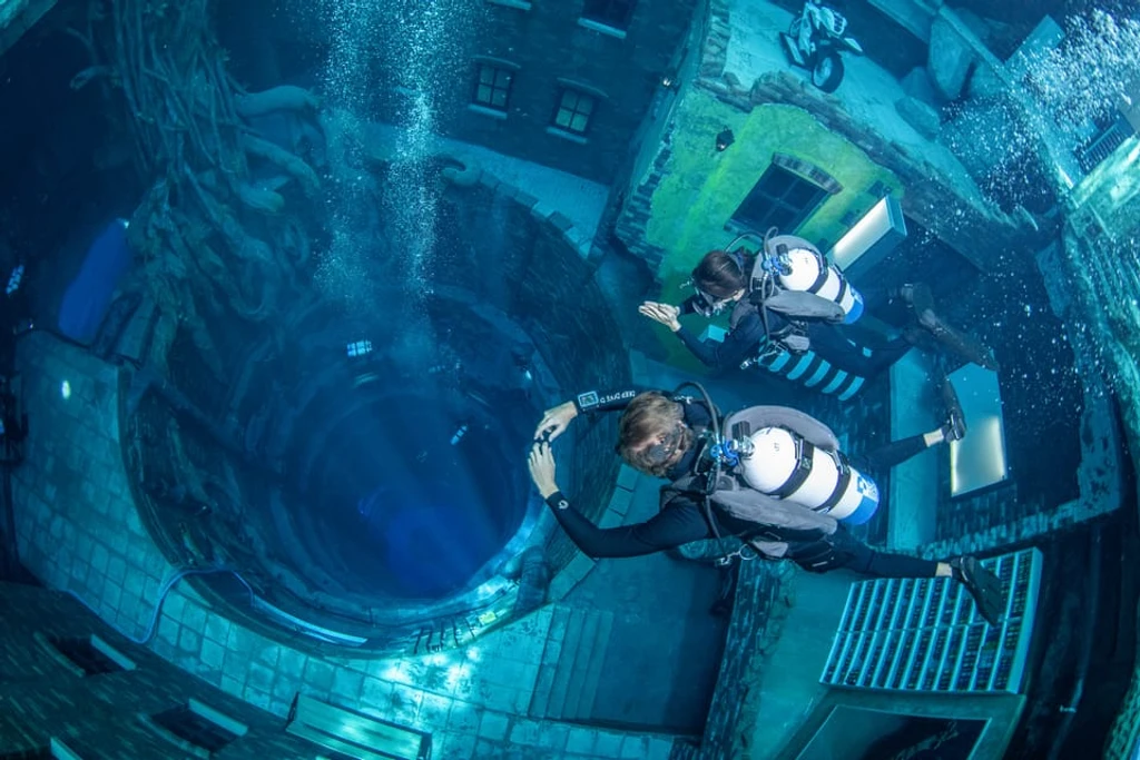 Deep Dive Dubai is a 60-metre deep diving pool in Dubai containing 14,000,000 liters of fresh water, it is the deepest swimming pool in the world. Make a splash as you go scuba diving in the world's deepest indoor swimming pool. Enjoy an experience suitable for those who have never dived before as you discover an underwater city with your guide.