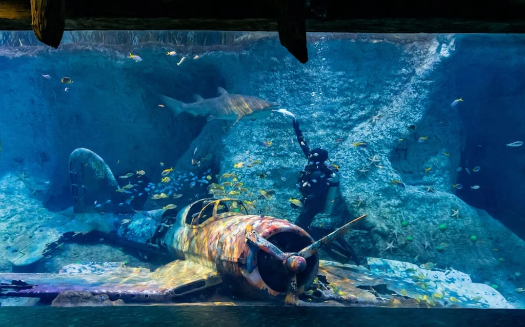 - Witness fearsome sharks, majestic rays, and colorful tropical fish, including over 200 sharks.